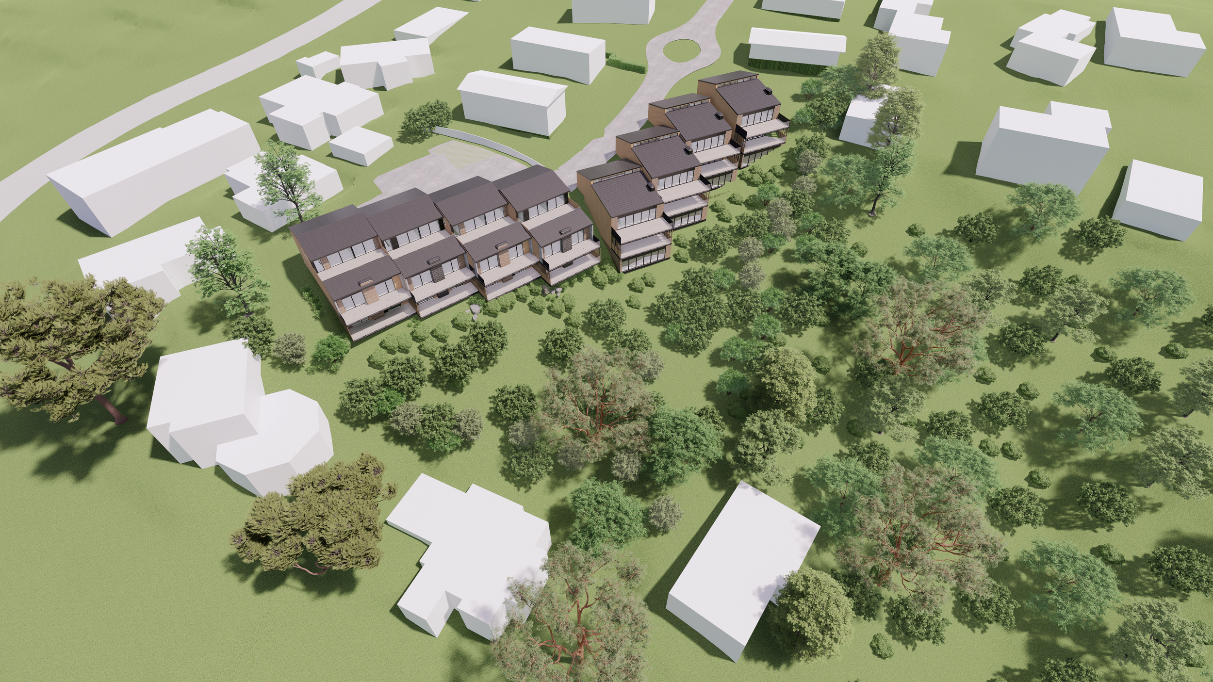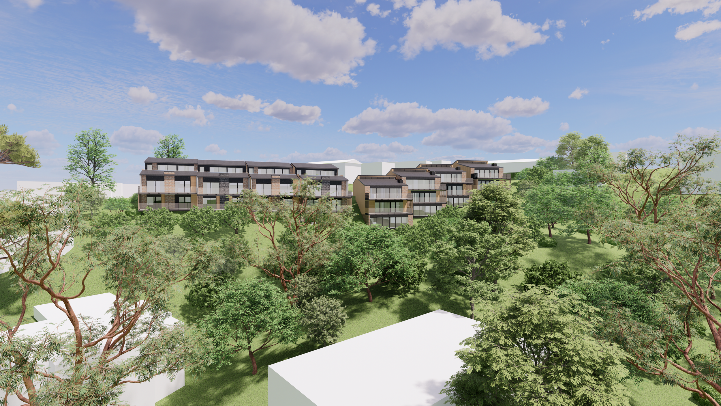 Approved consent. Clever master planning and precise building massing. Working with millimeters precision to achieve maximum gains for the best views and height to boundary permissions. Seamless integration of new development to the challenging nature of existing terrain.